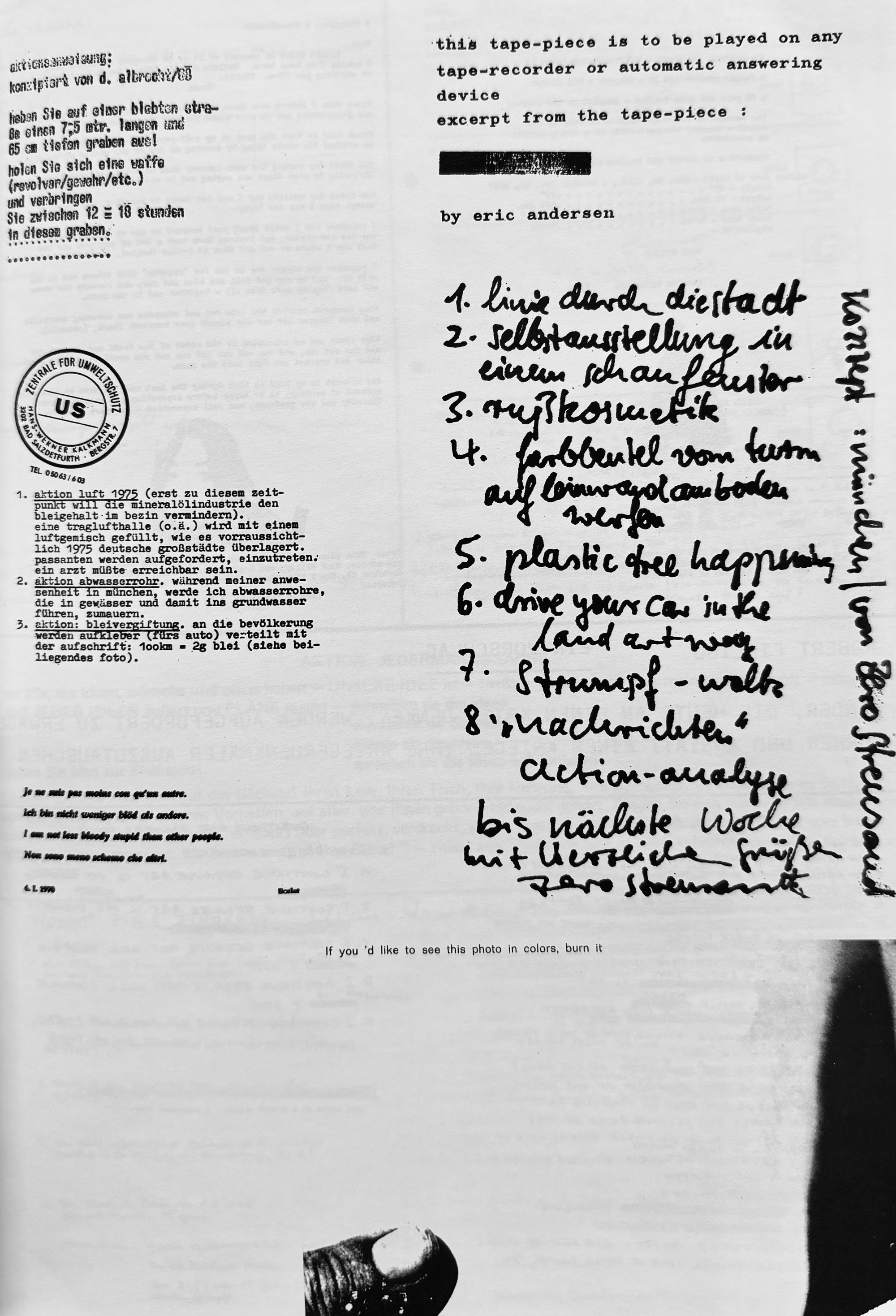 Aktionsraum 1 documents the radical Munich-based art space active between 1969 and 1970, where performances, happenings, and experimental practices redefined the limits of contemporary art. This volume traces the brief yet highly influential life of the initiative through archival materials, photographs, and critical texts, capturing the intensity and urgency of a pivotal moment in postwar avant-garde culture. Both a historical record and a cult artifact, the book remains essential for collectors and those drawn to performative and underground artistic movements.