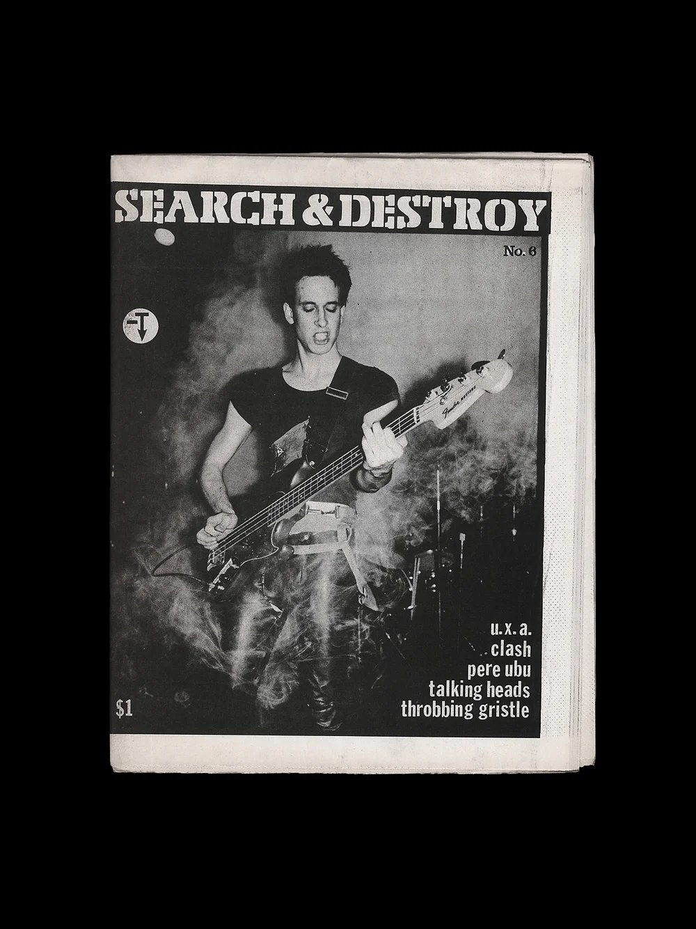 Founded by Vale Hamanaka in 1977 while working at City Lights Bookstore and supported by personal donations from Ferlinghetti and Allen Ginsberg, SEARCH & DESTROY was named for the Stooge’s anthem and became a hugely influential recorder of the early Punk scene in America, while also reporting on and interviewing the bands on the British scene, including Iggy Pop, Blondie, Dead Kennedys, X, Devo, The Ramones, Sex Pistols, The Clash, The Damned, Sham 69, Siouxsie and the Banshees and The Buzzcocks.